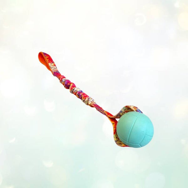 Dog toy with soft ball. Lined handle with elastic part.Overall length: 40 cm